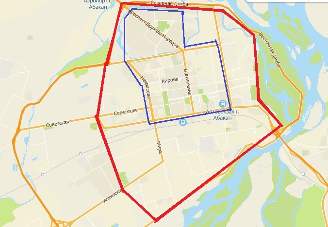 Доставка осуществляется бесплатно по г. Абакан в двух зонах: при заказе от 600р в пределах синей зоны .